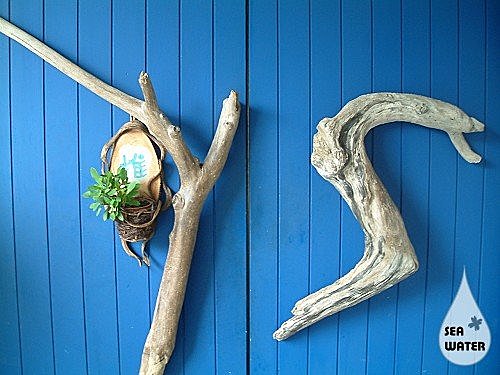▲男 廁門外以一根形狀、大小都非常「逼真」的漂浮木代表男性 |