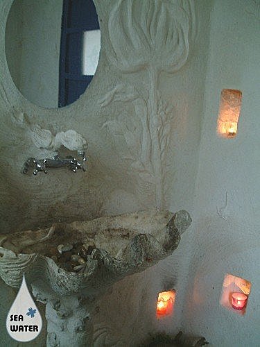 ▲洗手檯是用一片超大型的貝殼所設計的 |