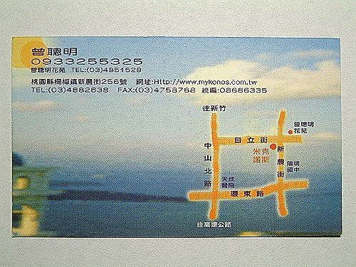 哇~照片看起來這家店佈置ㄉ眞不錯. BUT~~BUT~~這家店ㄉ名片圖案用的不是mykonos耶. 圖案可是希臘ㄉ另一個小島 Santorini . ^0^ V share my photo to sea water babe <a rel="nofollow" href="http://photo.pchome.com.tw/carolmao0219/">http://photo.pchome.com.tw/carolmao0219/</a><a rel="nofollow" href="http://photo.pchome.com.tw/carolmao0219/"></a>