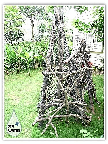 ▲用樹藤纏繞出來的架上,放上新鮮的蔬果,放在餐廳內擺飾還蠻舒服的,很自然 |