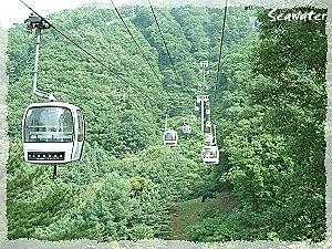 佔地340萬坪的洪川大明渡假村,超級無敵的大,我們一團人馬放下行李包包後,就先行乘坐觀光纜車到渡假村對面的山頭去俯瞰周圍山區景色及渡假村全貌,光是單程坐纜車就得花十分鐘,經過一個又一個的山坡,若是冬天來,肯定是一片雪白!