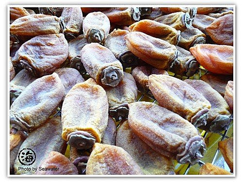 所以呢!柿餅已不再只是圓滾滾的了,筆柿的果實是圓長形的,做成柿餅也變得瘦瘦長長,筆柿的產季在十二月,比牛心柿和石柿慢了兩個月,所以現在食用正是時候。不過,在台灣有優良的冷凍保存技術,其實一年四季都可以買得到好吃的柿餅。和海水格格喜歡攝影的朋友們,要拍筆柿的製作過程就趁現在嘿!網路新聞這篇也有報導!