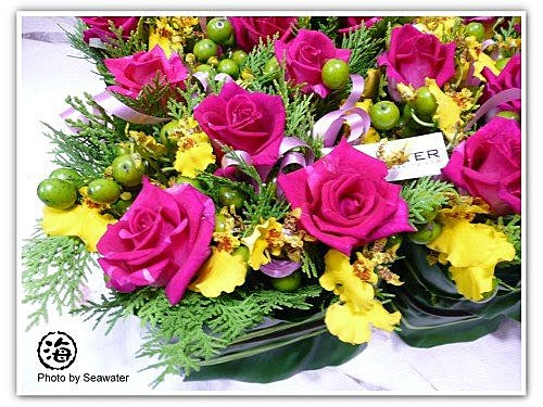 ▲花材:明日之星玫瑰、文心蘭、苦楝仔、山蘇葉
