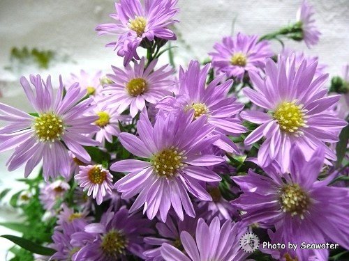 孔雀紫苑,菊科紫苑屬多年生宿根性草本植物,又稱紫孔雀、粉紫孔雀、孔雀菊、孔雀草、紫苑,原產於北美洲,莖直立少分枝,基部略木質化,葉互生披針形,排列略稀疏,頭狀花序,花聚生莖頂,中央黃色筒狀花,周圍淡紫舌狀花,花色另有:白、粉、藍紫等色,有單瓣、重瓣之分,已栽培出數種品種。