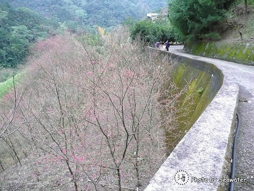 碧絡角除了花園、咖啡和民宿外,後方還有一個很大的環山步道,延著步道走,會先看到開滿白花的李子樹,接著就是滿山的櫻花林,這天去看見櫻花還含苞待放,開花約二~三成,再過二個星期一定更美。