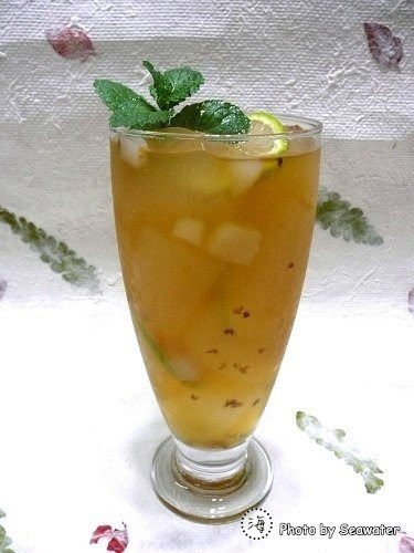 ▲加了點桂花釀,也擠了一點檸檬,先前的敗筆~寒天愛玉也給他切丁