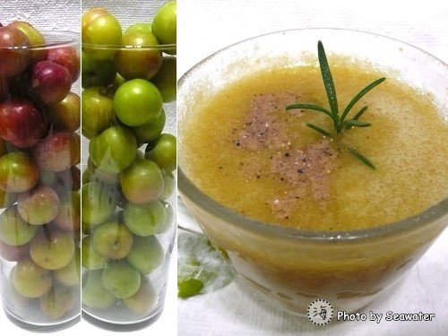 ▲新鮮白玉李敲破後灑一點梅子粉醃漬入味後冰涼,很不錯吃!
