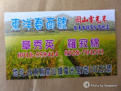 ◎關山電光米(自產自銷) 東洋春商號 0910558414章秀英、0928704293羅寂綿