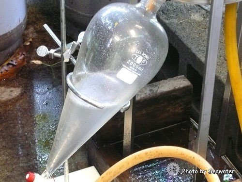 ▲蒸餾出來的有水、有油,這在第一道程序就可以做初步的油水分離,浮在上面的為精油,下方的蒸餾水也是非常有香氣的呦!