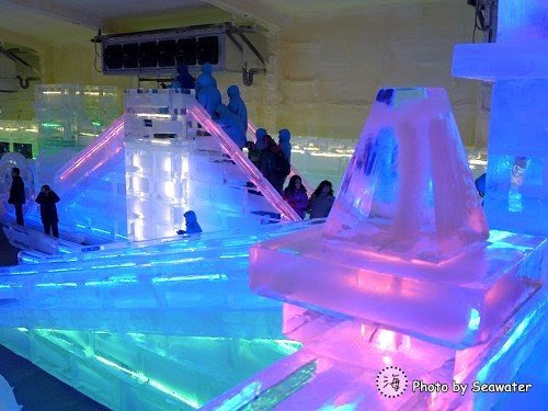 如果您是一時興起而來看冰燈,不用怕沒有帶外套,嘉年華現場有提供雪衣外套租借,一件NT$50,有大人也有小朋友的size,還蠻方便的。有想要溜冰滑梯的人(大人小孩皆可滑),建議不要穿牛仔褲(牛仔褲止滑效果超強),其他的就慢慢欣賞吧,我在裡面逛了35分鐘!