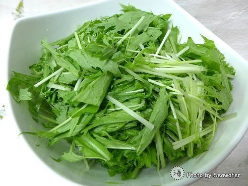 在日式料理店吃到「山藥水菜沙拉」這道菜時,水菜口感之爽脆讓我印象深刻,後來再馬可先生麵包坊的門市發現有「水菜」,於是乎買回家自己涼拌。